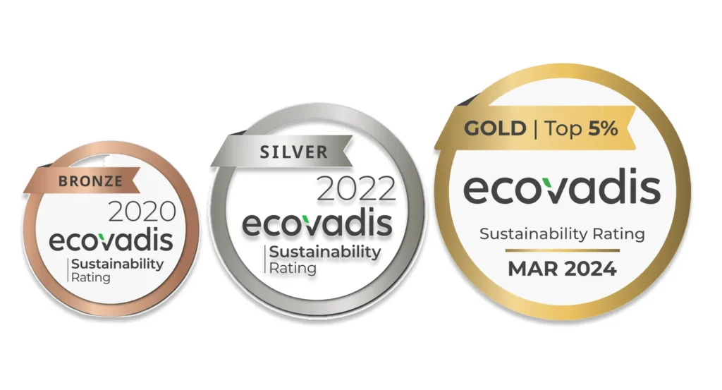 A marzo 2024, abbiamo finalmente conseguito la medaglia Gold di EcoVadis, il riconoscimento più elevato per le performance di sostenibilità aziendale.