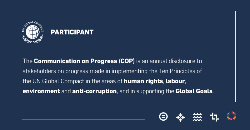 Nel corso del 2024 abbiamo rinnovato la nostra adesione all’UN Global Compact, presentando la nuova Communication of Progress 2024. Un gesto che riafferma l’impegno nei confronti dei 10 principi in materia di diritti umani, lavoro ambiente e lotta alla corruzione.